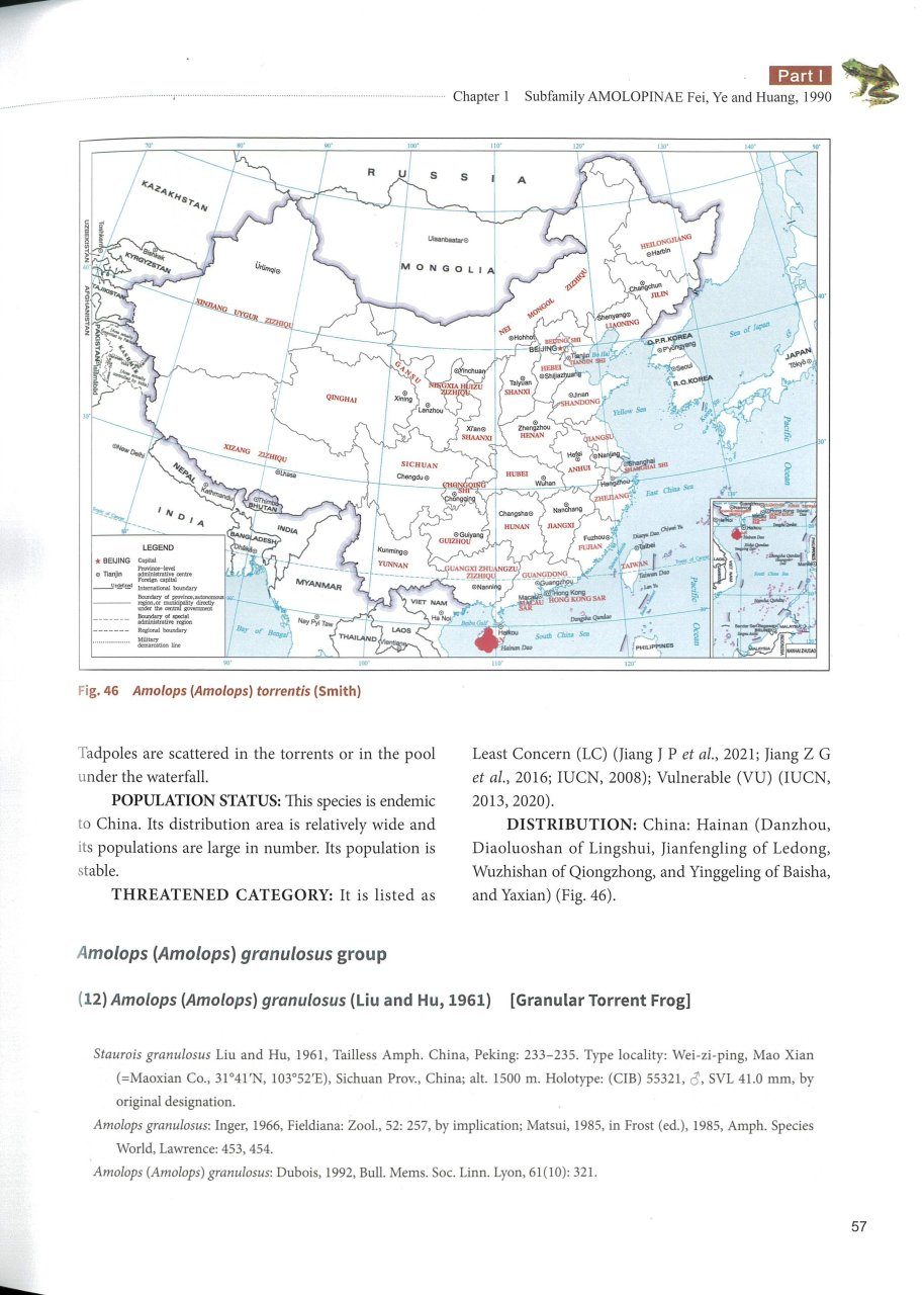 The second part is an appendix, including keys of tadpoles and eggs, measurement data for adults, tadpoles, and eggs, skeletal terminology for adults, and karyotypes I and karyotypes II of Ranidae and Dicroglossidae. The second part also includes geographic distribution of species, indices of Latin names and English names, and images of Chinese type specimens from museums and other institutions.