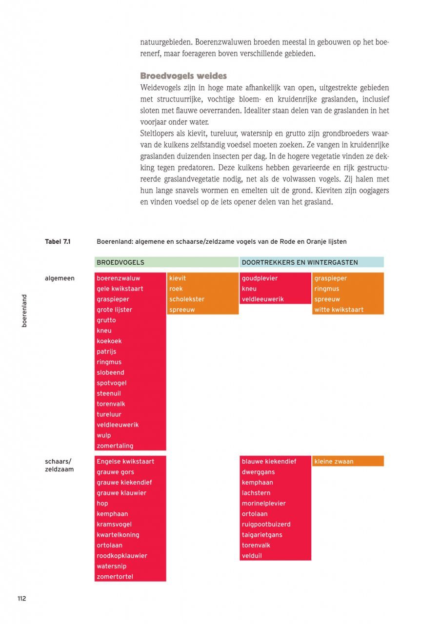 Bij elk daarvan geven de auteurs aan welke Rode en Oranje Lijstsoorten er leven, wat hun trend is, welke maatregelen er mogelijk zijn en waar je de hotspots in Nederland vindt.