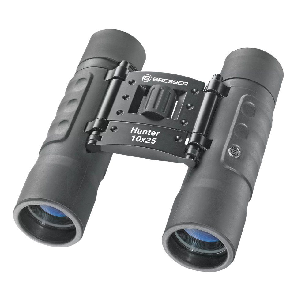 The BRESSER Hunters are compact and lightweight binoculars, ideal for use on the go. The fully-coated BK-7 optics offer good-quality, clear image reproduction. These binoculars feature diopter adjustment as well as foldable rubber eyecups, making them suitable for both glasses and non-glasses wearers. Moreover, the image can be quickly focused with the user-friendly central focus wheel. The durable, non-slip rubber armouring on the BRESSER Binoculars Hunter 10x25 ensures a firm grip and protection from impacts.