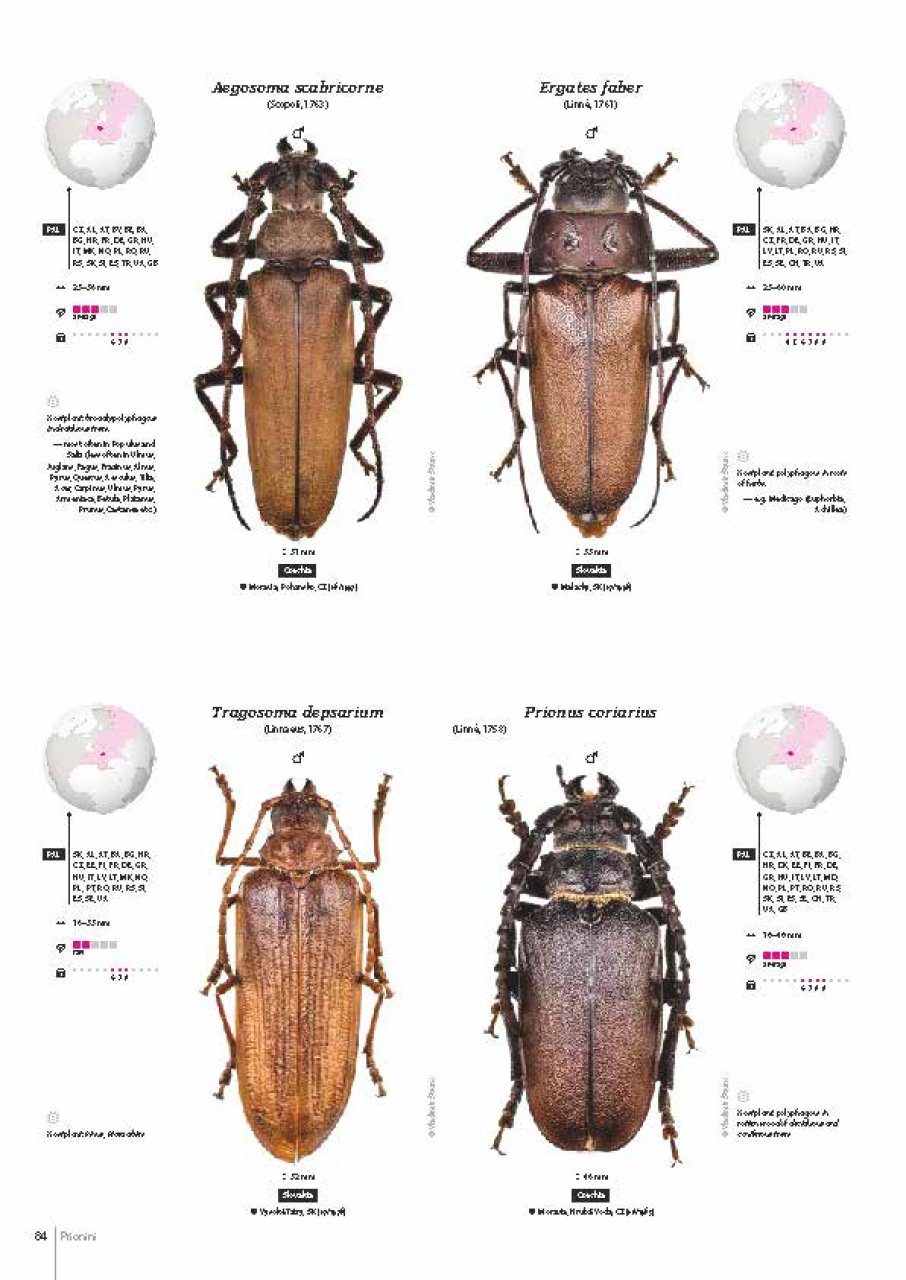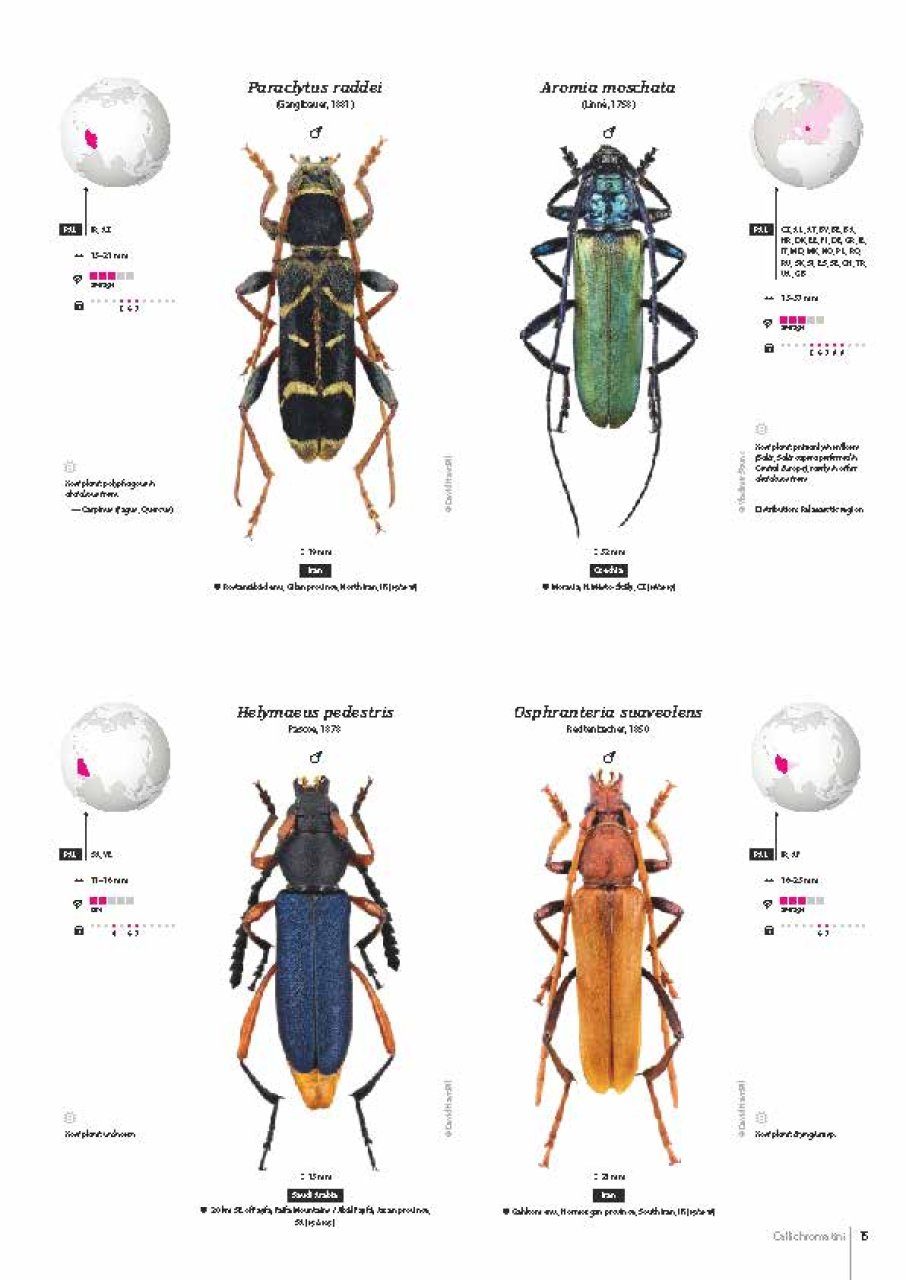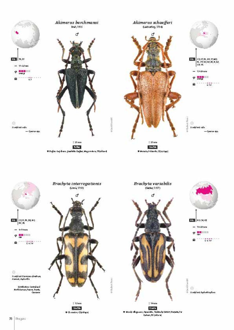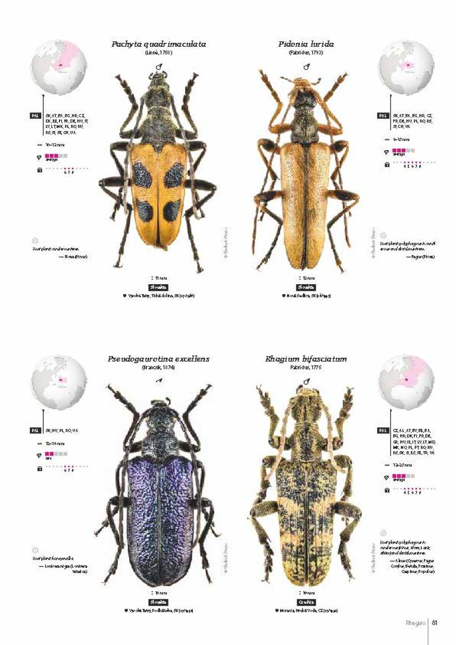 Cerambycidae of the Palearctic: Illustrated Geographical Guide presents a comprehensive encyclopedia of the beetle family Cerambycidae from this region. The aim of this pictorial guide is to introduce these fascinating representatives, commonly known as Longhorn Beetles, to all nature enthusiasts. The book stands out thanks to its detailed identification views and the wide range of genera it features. Specifically, it depicts 300 species from 184 genera. Included in the main illustrated section, which shows mounted specimens, are bionomic details, collection locations, and a map indicating the distribution and exact collection site of each individual specimen.