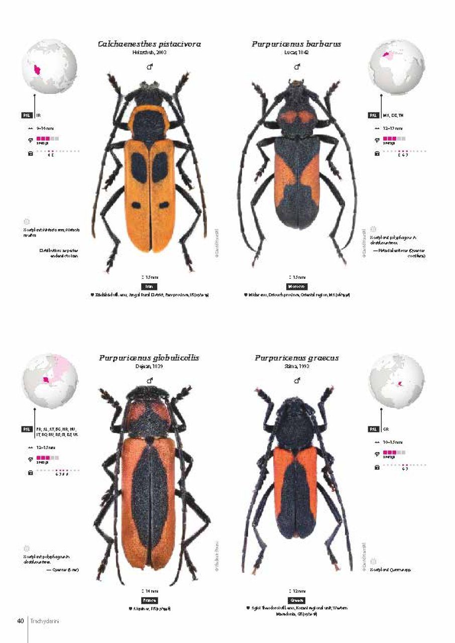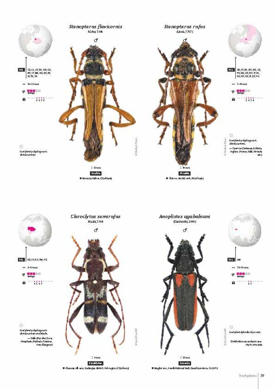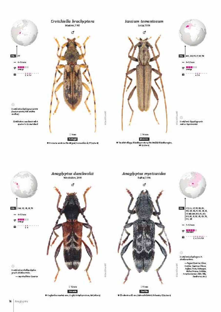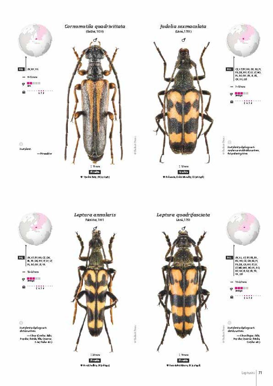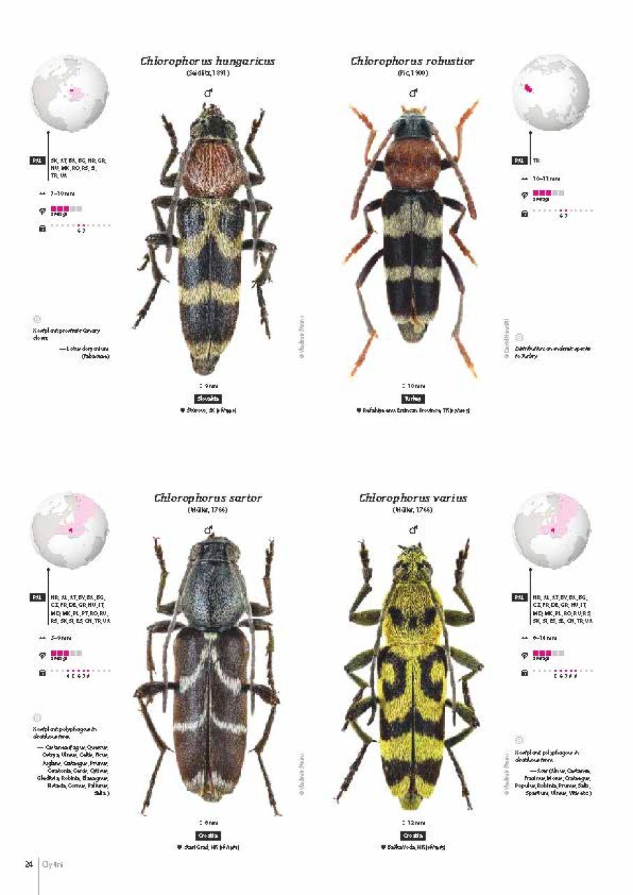 Cerambycidae of the Palearctic: Illustrated Geographical Guide presents a comprehensive encyclopedia of the beetle family Cerambycidae from this region. The aim of this pictorial guide is to introduce these fascinating representatives, commonly known as Longhorn Beetles, to all nature enthusiasts. The book stands out thanks to its detailed identification views and the wide range of genera it features. Specifically, it depicts 300 species from 184 genera. Included in the main illustrated section, which shows mounted specimens, are bionomic details, collection locations, and a map indicating the distribution and exact collection site of each individual specimen.