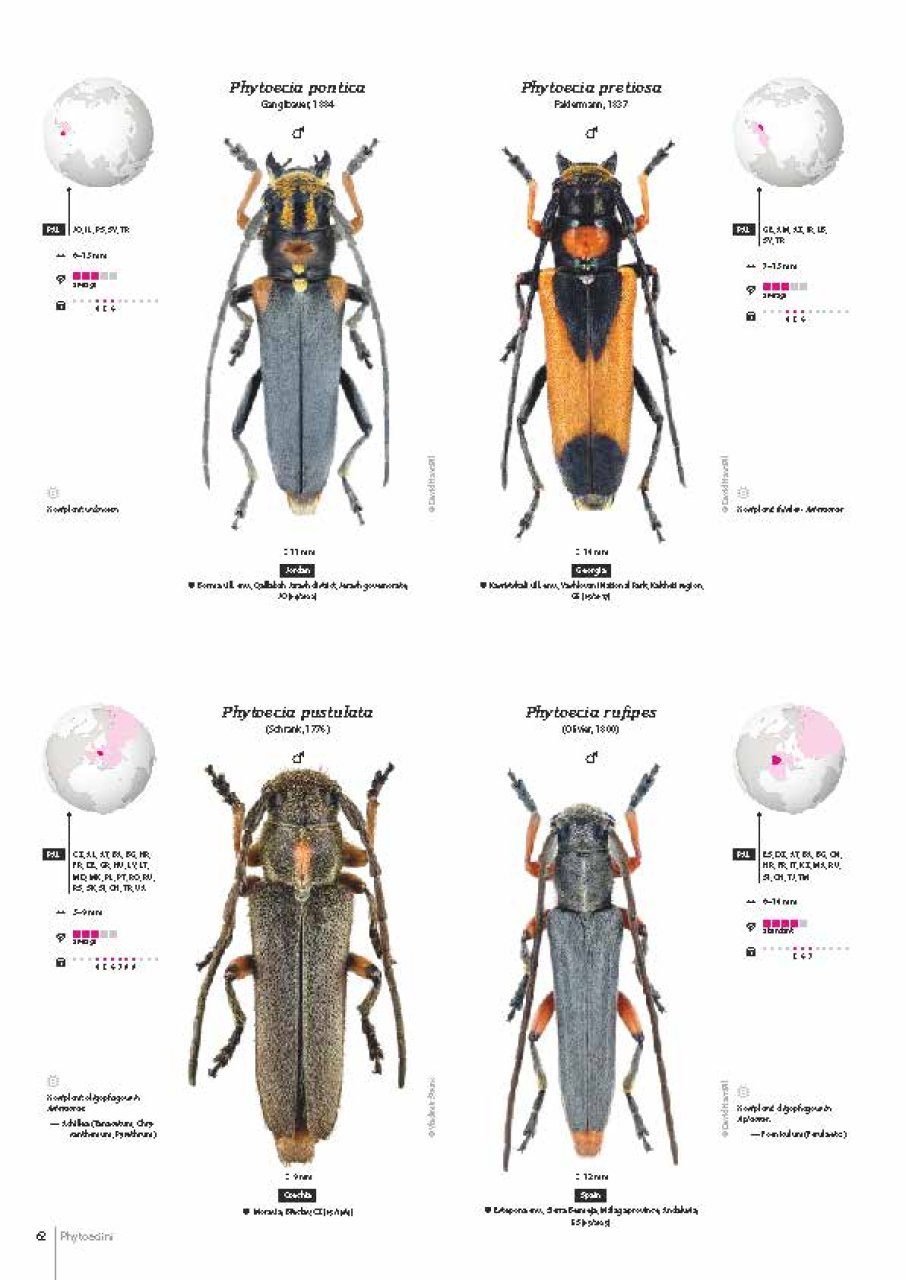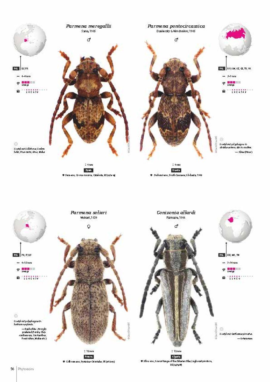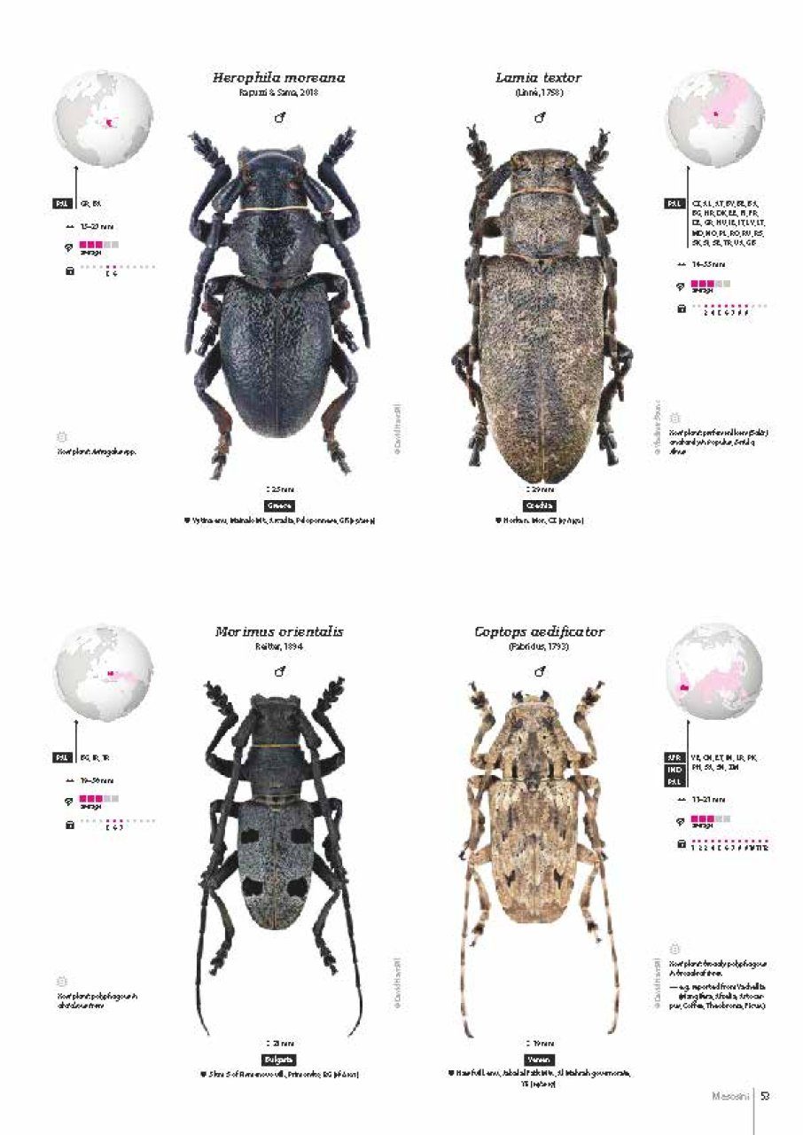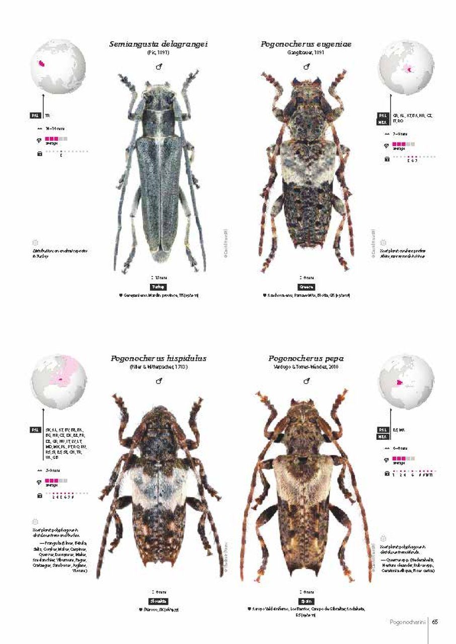 Cerambycidae of the Palearctic: Illustrated Geographical Guide presents a comprehensive encyclopedia of the beetle family Cerambycidae from this region. The aim of this pictorial guide is to introduce these fascinating representatives, commonly known as Longhorn Beetles, to all nature enthusiasts. The book stands out thanks to its detailed identification views and the wide range of genera it features. Specifically, it depicts 300 species from 184 genera. Included in the main illustrated section, which shows mounted specimens, are bionomic details, collection locations, and a map indicating the distribution and exact collection site of each individual specimen.