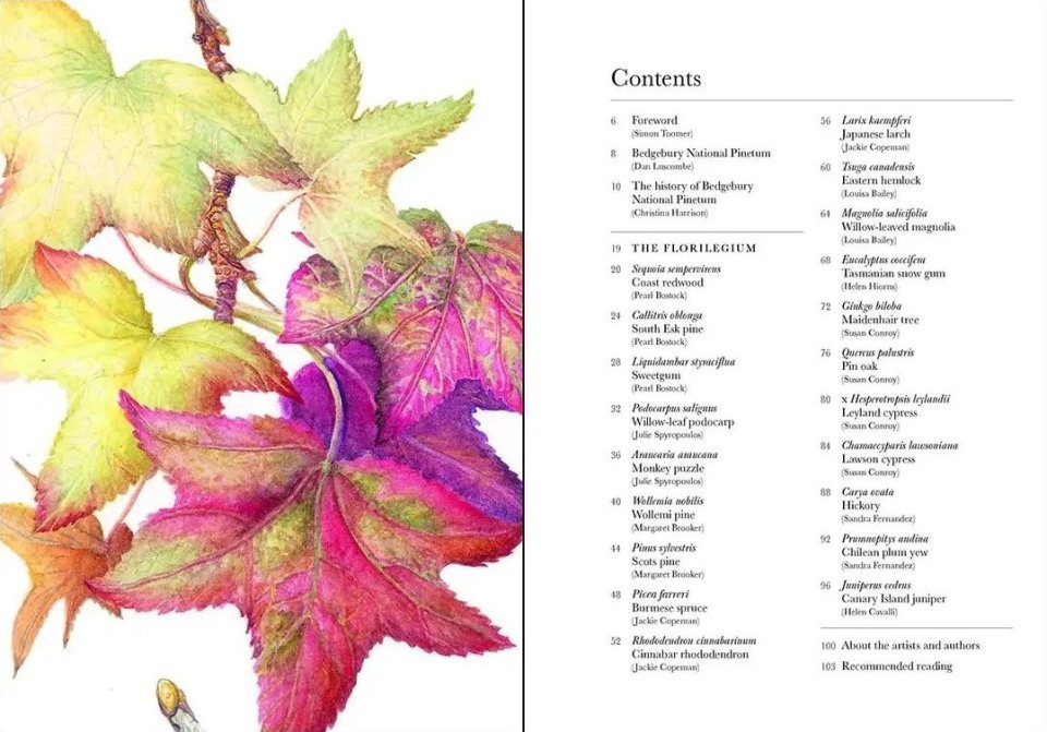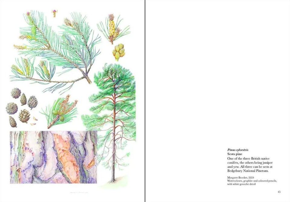 Following the First World War, Kew conifer expert William Dallimore noticed that years of increasing industrial pollution in London were found to be adversely impacting the growth of the trees and went in search of a better environment to house Kew’s conifer collection. With varied topography and a mixture of soil types, Bedgebury near Flimwell in Kent proved to be ideal, and the first planting of trees grown at Kew took place there in 1925. Today, Bedgebury is home to nearly 12,000 tree specimens and is a centre for conifer science and conservation. At the heart of the book are the botanical paintings by the Bedgebury National Pinetum Florilegium Society. Founded in 2008, this group of botanical artists are dedicated to documenting the Pinetum’s remarkable plant collection through scientifically accurate and artistically stunning illustrations.