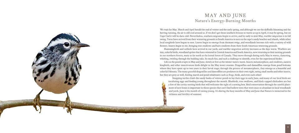 From winter's dormant woodlands and barren beaches, to the whales and waterbirds of high summer, this book explores Cape Cod's animals and plants through a year of dormancy, rebirth, and migration. In more than 150 photographs with captions, field biologist Peter Trull describes the cape's intricate ecosystems and reveals how the seasons come together. In spring he observes spotted salamanders mating after the March full moon, and in summer he watches bluebirds feed their young. In autumn he looks for the colouFrom winter's dormant woodlands and barren beaches, to the whales and waterbirds of high summer, this book explores Cape Cod's animals and plants through a year of dormancy, rebirth, and migration. In more than 150 photographs with captions, field biologist Peter Trull describes the cape's intricate ecosystems and reveals how the seasons come together. In spring he observes spotted salamanders mating after the March full moon, and in summer he watches bluebirds feed their young. In autumn he looks for the colorful caterpillar of the monarch butterfly on wild milkweed, and in winter he focuses on the many species of arriving birds that gather along pond edges. The result is an intimate, often-exhilarating tale of Cape Cod and its seasons.rful caterpillar of the monarch butterfly on wild milkweed, and in winter he focuses on the many species of arriving birds that gather along pond edges. The result is an intimate, often-exhilarating tale of Cape Cod and its seasons.