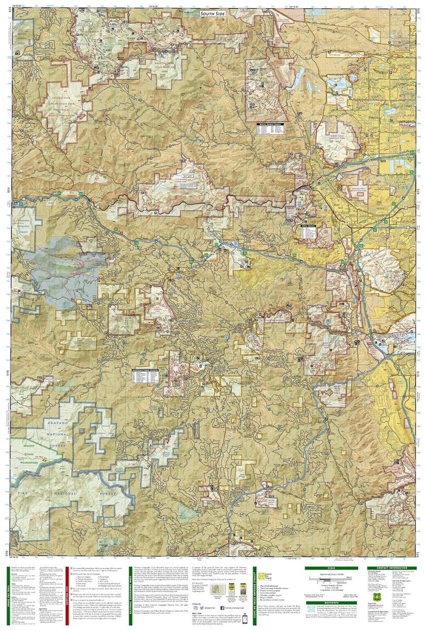 Every Trails Illustrated map is printed on "Backcountry Tough" waterproof, tear-resistant paper with a full UTM grid for GPS navigation. Other features include Arapaho National Forest, Boulder, Golden, Pike National Forest, Roosevelt National Forest, Superior, and Thorodin Mountain.