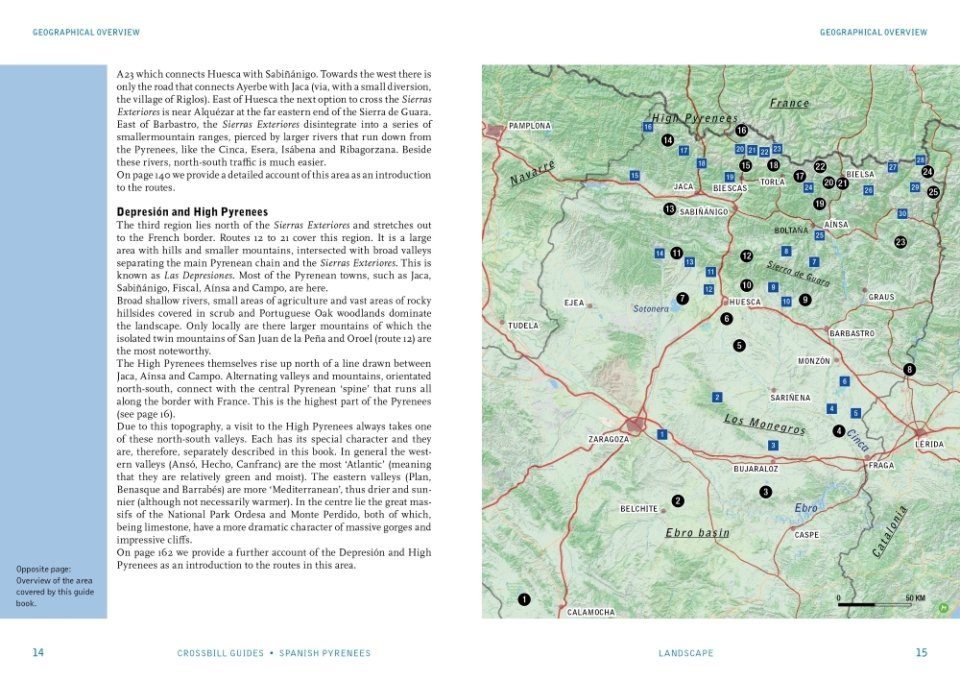 This guide covers the central part of the Spanish Pyrenees plus the dry, desert-like Ebro basin beneath it. It covers the northern part of Aragón, roughly coinciding with the province of Huesca. This guide covers the famous Pyrenean regions of Ordesa and Monte Perdido National Park, Aneto and Benasque, Jaca and the Hecho Valley. Further south, it covers the Sierra de Guara, the Somontano and Los Monegros (including Belchite) and the Laguna de Gallocanta.
