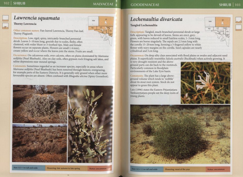 All plant names have been updated and many photos replaced by better images. 212 of these plants are featured with full-page descriptions, the others have shorter entries. Plant descriptions have intentionally been written using non-technical language. This is one of the only publications available in print on the arid plants of South Australia. It is also useful to identify plants from adjacent regions in central Australia. Comments on each plant include pastoral value, general interest and aboriginal usage. The guide is presented in a way that is accessible to everyone.