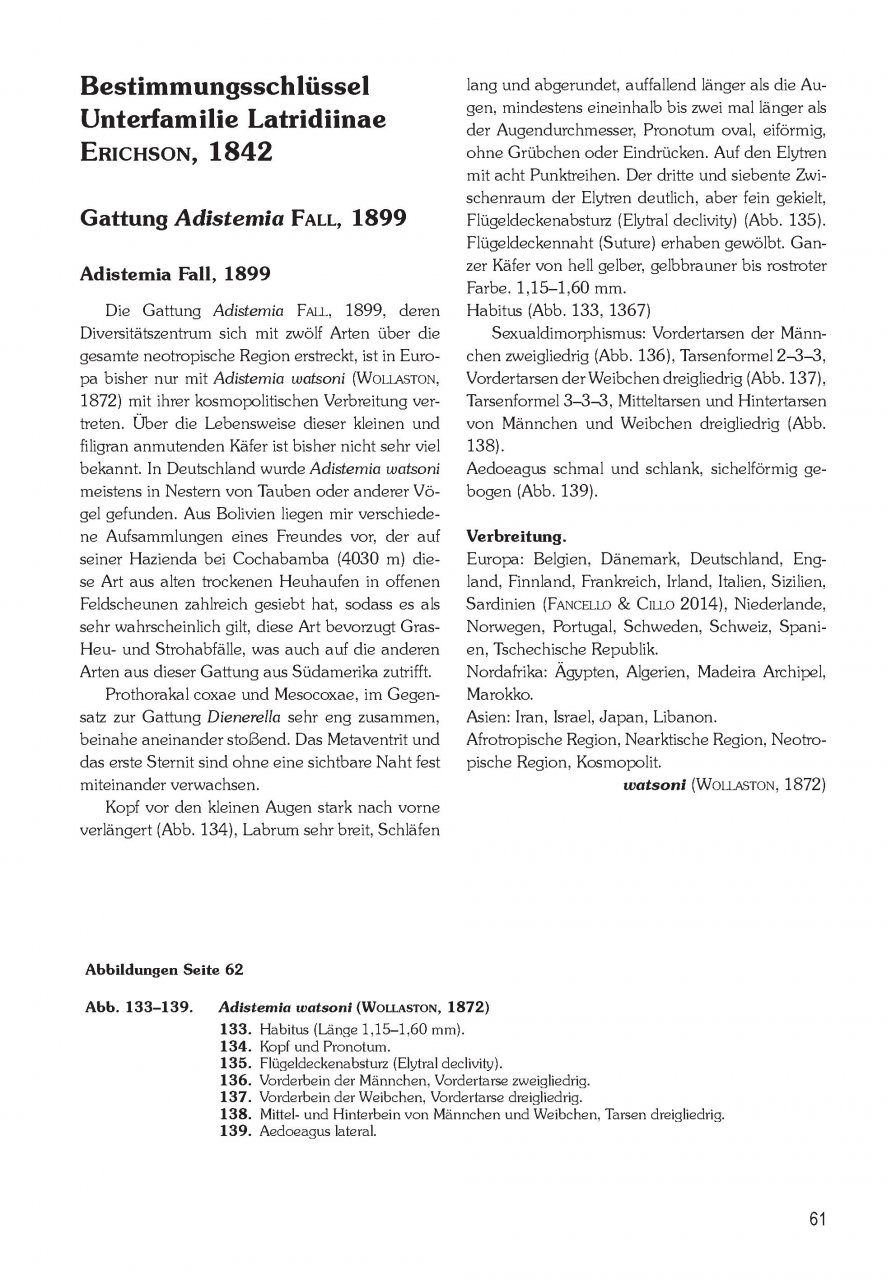 Alle Arten sind mit Aedoeagus und vielen Details in Halbtontechnik, als Strichzeichnung, Farbzeichnung oder als Foto abgebildet. Von den meisten Arten der Latridiidae und Merophysiidae werden hier überhaupt erstmals detaillierte Abbildungen von Habitus und Aedoeagus veröffentlicht. Alle Arten werden mit vollem gültigen Namen, allen Synonymen und wenn möglich, dem Aufbewahrungsort der Holotypen, Paratypen und Lectotypen, einer kurzen Diagnose mit Kurzbeschreibung vorgestellt. Zusätzlich werden als faunenfremde Arten einige Latridiidae und Merophysiidae aus Randgebieten der West-Paläarktis mit vorgestellt und abgebildet.