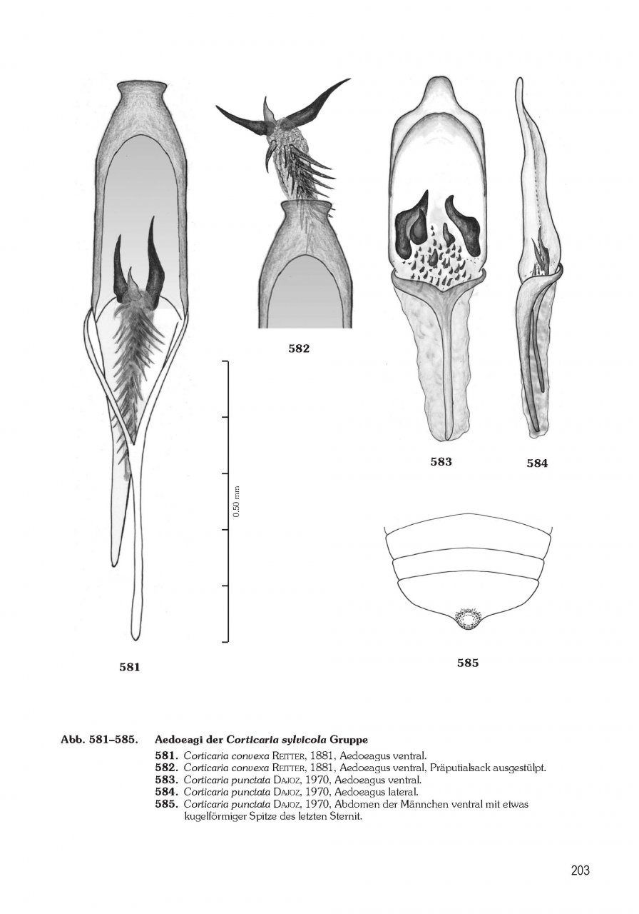 Male reproductive organs (the aedeagus) of all species are depicted, togethe with many details in halftones, as a line drawing, colour drawing or as a photo. For most species of Latridiidae and Merophysiidae detailed images of the habitus and aedeagus are published here for the first time ever. All species are presented with full valid names, all synonyms and, if possible, the repository of holotypes, paratypes and lectotypes, a short diagnosis with a brief description. In addition, some Latridiidae and Merophysiidae from peripheral areas of the Western Palearctic are also presented as faunal-foreign species.