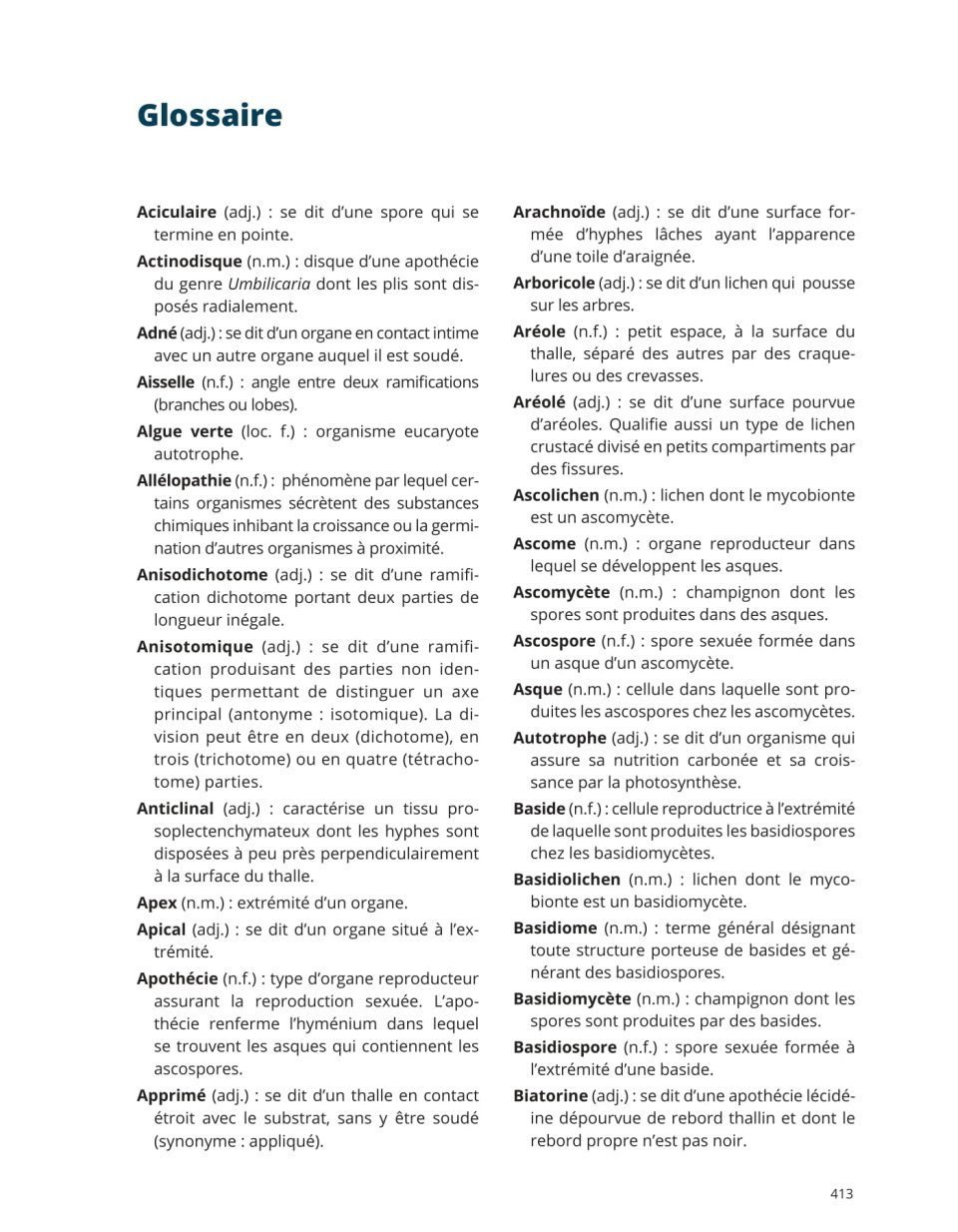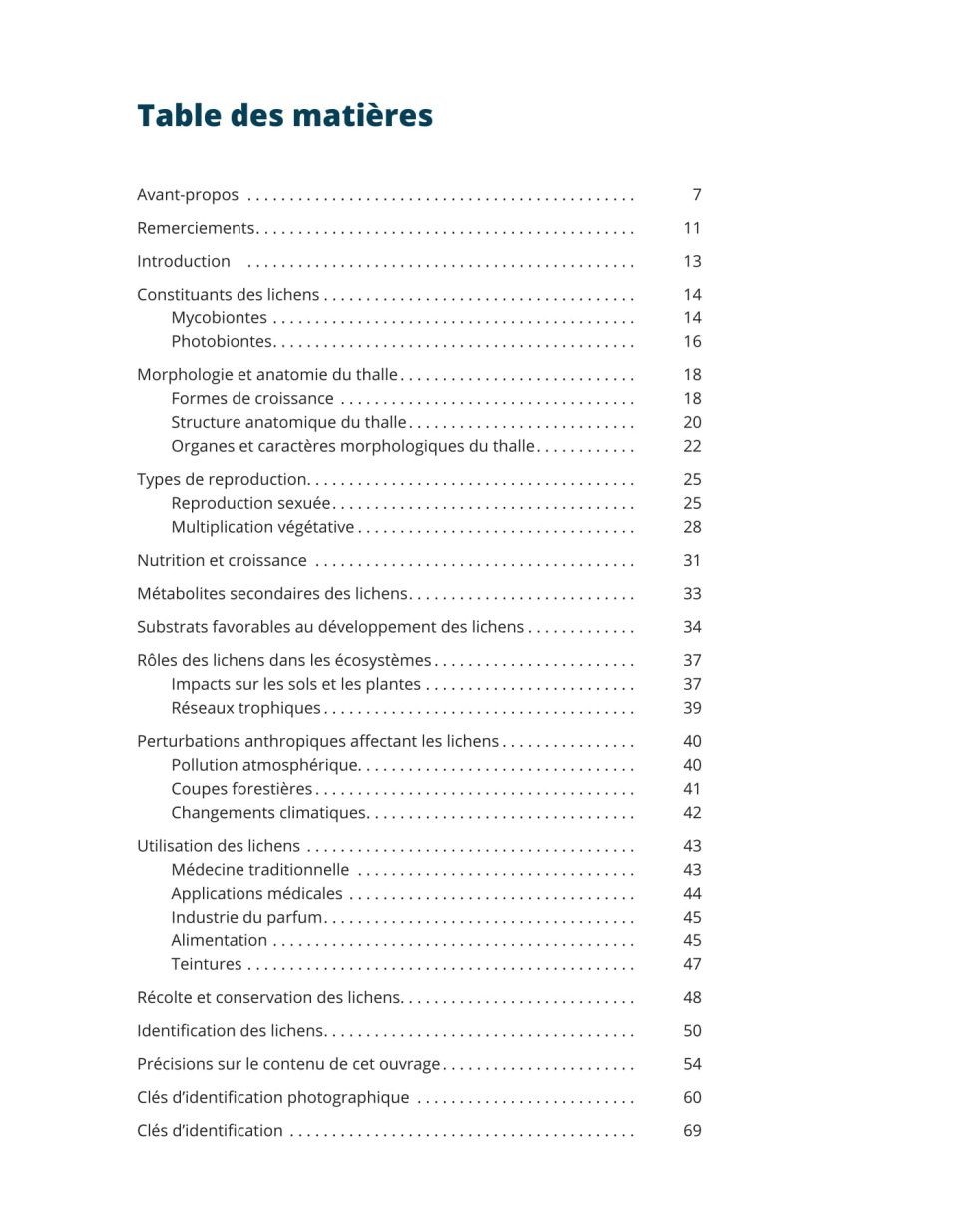 More than 250 species of macrolichens and several species of microlichens from northern Quebec are botanically described. Many of them are also present in southern Quebec. The book includes an introductory chapter covering various aspects of lichens such as morphology, their role in the ecosystem, their use, their harvest and their identification. Each species is accompanied by high-quality photos, a distribution map and a detailed description of the thallus morphology and the mode of reproduction. A photographic identification key and a dichotomous key are presented and are used to identify each taxon. A glossary of terms specific to lichens is also present to facilitate the reading of the book.