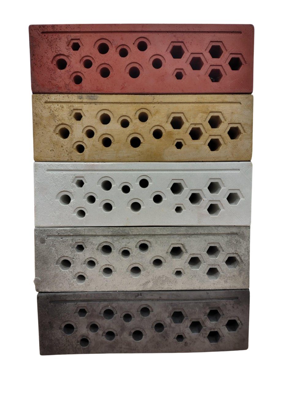 These bricks feature holes of varying sizes, effectively enticing bees from different species to use them for reproduction. Furthermore, their frost-resistant material makes them ideal for overwintering bees. They are also low-maintenance and easy to clean, helping to prevent the transmission of mites and diseases between successive nesting bees.