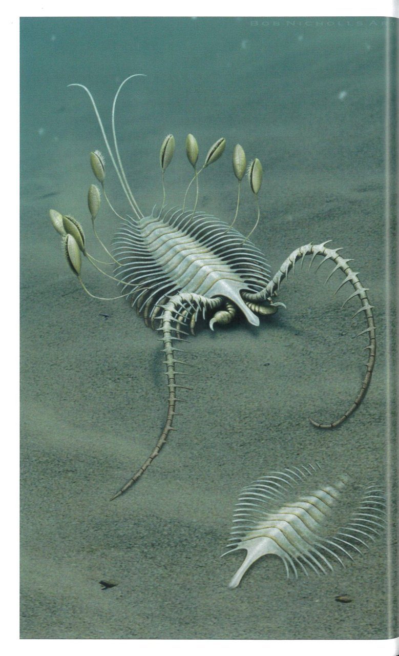 Undeniably, The Secret Lives of Dinosaurs has all the appearances of being Locked in Time II. It follows the same formula: previously, we got 50 case studies under five subject headings; now we get another 49 case studies under eleven headings. Furthermore, in his introduction, Lomax adds that "You might even consider this a sort of sequel" (p. 1). Finally, when I interviewed Lomax back in 2021, he mentioned originally wanting to discuss 100 fossils but having to cut his selection in half. One fossil he regretted having to omit was the arthropod Aquilonifer spinosus, nicknamed the kite runner, that was found with its offspring tethered to its body by long filaments. That fossil here appears in chapter 3 as "Tethered Toddlers". However, calling this book a mere sequel would be doing it a disservice: this is more than a compilation of the leftovers that missed the cut last time.