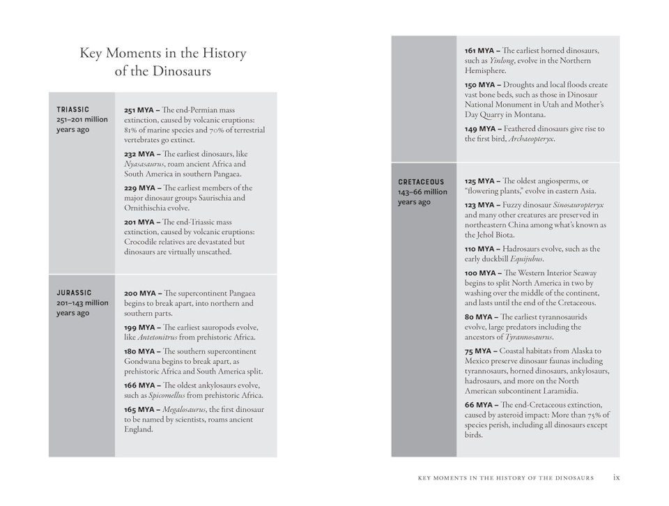 Despite their cultural influence, the grand narrative of the dinosaur story is rarely told. Most of us have heard of Stegosaurus and Tyrannosaurus, for example, but these two dinosaurs lived more than eighty million years apart – a greater span of time than the entire post-T. rex history of the planet. Furthermore, we often know even less about the environments these animals lived in – the other animals and plants and dramatic changes to the earth the dinosaurs inhabited.