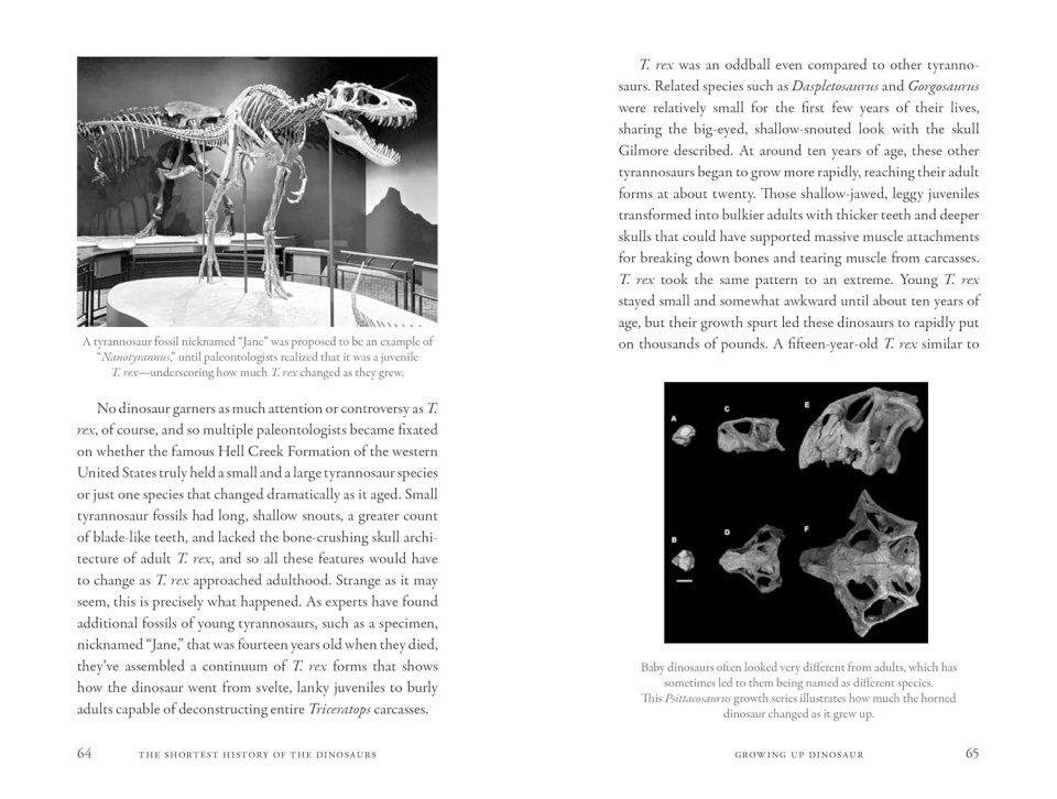 The Shortest History of the Dinosaurs tells the full story, a 230-million-year epic of small beginnings, spectacular golden periods, and eventual global domination – before an unthinkable asteroid event brought everything to a screeching halt. Covering the major moments in evolution, extinction, and ecology, we learn that, for millions of years in the Triassic, dinosaurs were dog-sized and ordinary – but slowly developing evolutionary traits like feathers and warm-bloodedness that would set them up for future success. In the Jurassic Period, these traits – and others like laying eggs and growing specialized air sacs – led to an era of rapid growth in dinosaur population and physical size. As Pangaea continued to break apart, during the Cretaceous Period, dinosaurs traversed the globe, adapting to air and water – before a six-mile-wide asteroid hit Central America and brought the age of dinosaurs to a fiery end.