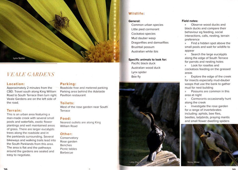 This book is designed to encourage people to explore the many wonderful environments around South Australia's capital Adelaide and its suburbs, and discover some of the amazing wildlife that lives on its doorstep. It covers 51 locations and provides a taste of what lives in parks, gardens, wetlands and along the beaches. A very handy guide for anybody visiting Adelaide and a great introduction to the wildlife of the area.