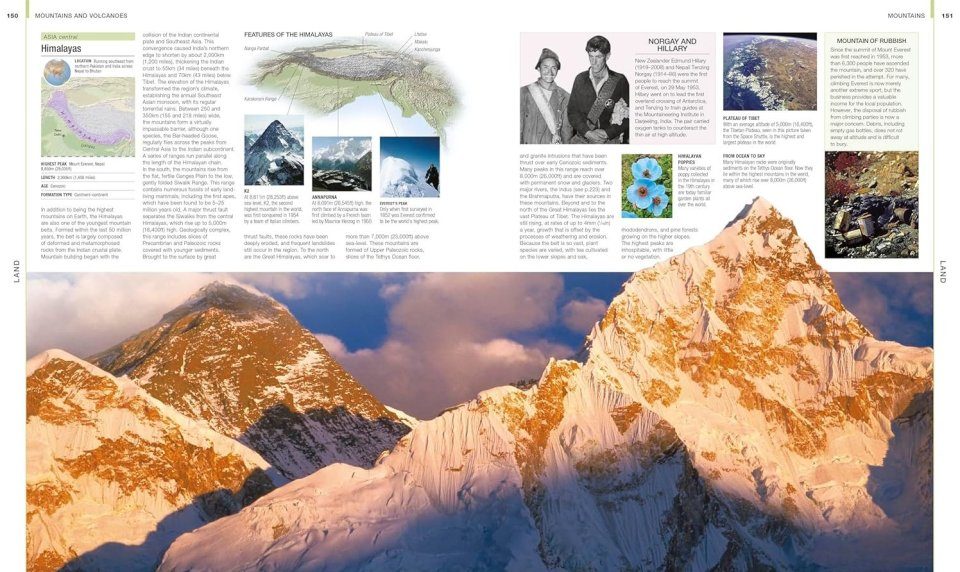 Parts of the book lay out systematic and in-depth reference guides to core scientific information, such as more than 100 types of rocks and minerals. Similar sections contain visual profiles of some of the wonders of the natural world, from the Andes and Himalayas to the Grand Canyon, the Sahara Desert, and the Amazon Rainforest. Revised and updated to include the latest developments in fast-changing geology and Earth science areas – including Earth history, climate change, and urban geography – this is a classic reference book for anyone who wants to understand how our planet works.