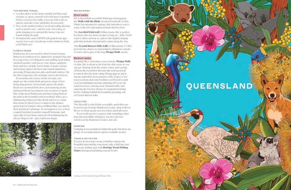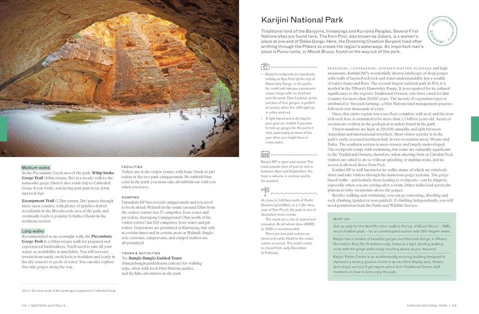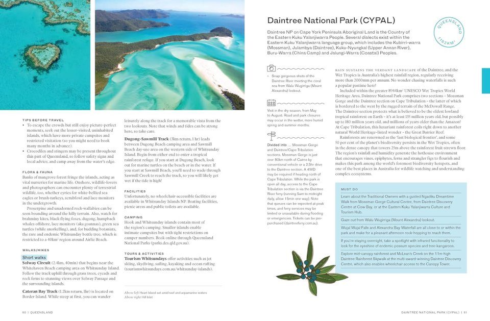 These 75 must-see nature areas will soothe your spirit, pique your interest and inspire a deeper connection with Australia's environment. Get a feel for these national parks before you visit, as each entry covers Traditional Owners, history, wildlife, the best landmarks, must-do activities, and where to walk and camp. Experience a prolonged beach break on the pristine sands of the Queensland coast, climb mountains in the Australian Alps, stop to smell the (wild)flowers of Western Australia's South West, seek wisdom from the ancient rainforests of northern New South Wales, feel the stiff sea breezes of the Great Ocean Road on your face, or hear the cacophony of birdcalls in Kakadu.