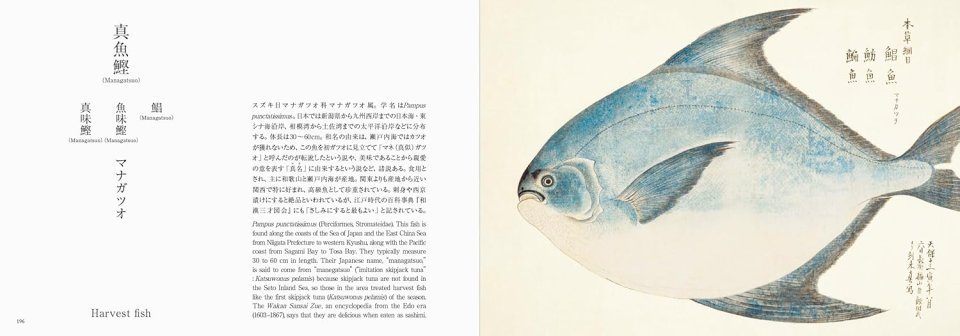 This book features illustrations of 94 species created by Mōri Baien, carefully selected from Baien-Gyofu (Baien Atlas of Fishes) and Baien-Gyohinzusei (Baien Pictorial Encyclopedia of Fishes), explained in bilingual Japanese-English text with information about each fish, such as the origin of its Japanese name, classification, scientific name, etc. In addition, cultural information such as what each fish was used for during the Edo period, the folklore surrounding them, and more is also introduced. This book deciphers one aspect of the profound story of Japanese people living in a seafaring country and fish.