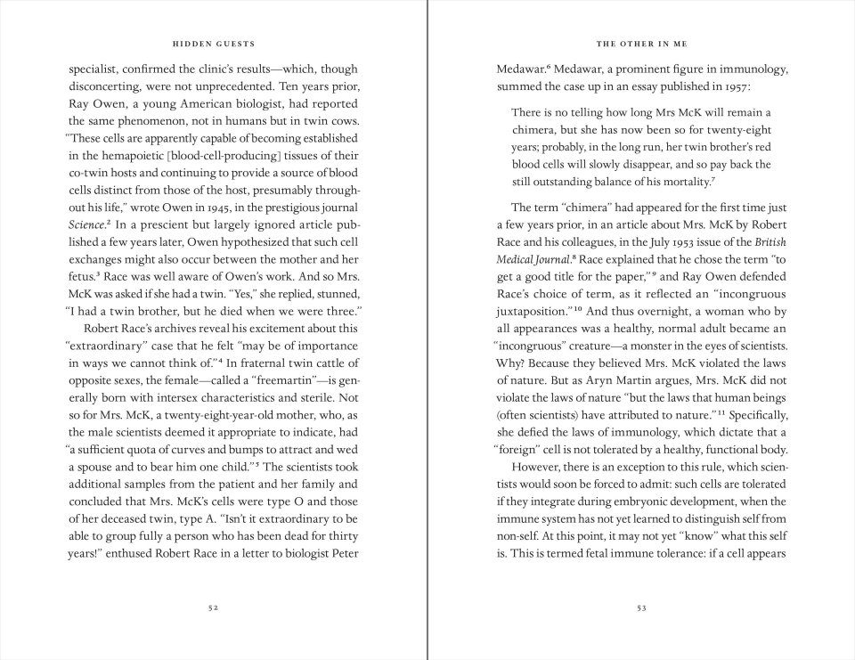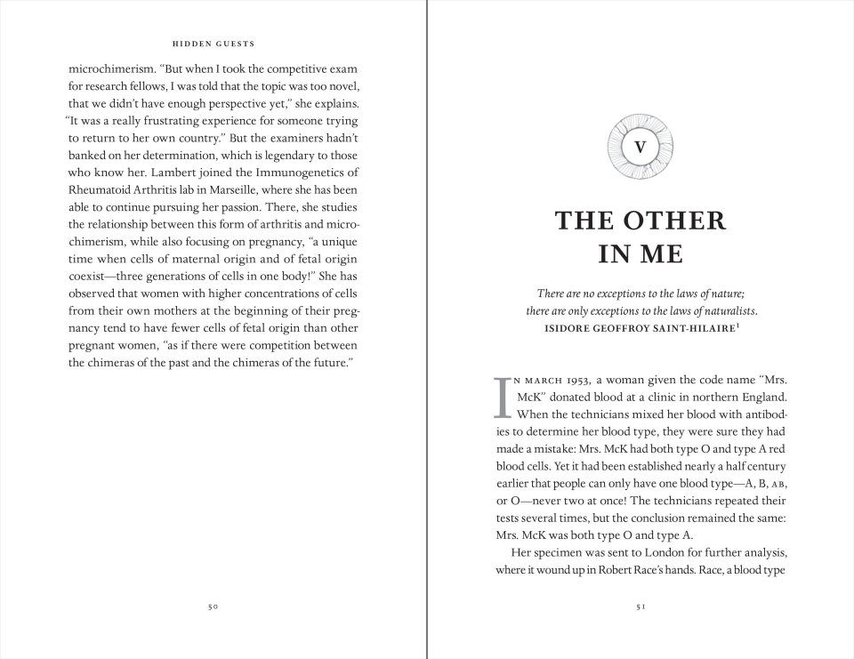 "It is most fortunate that the subject of microchimerism found Lise Barnéoud's eloquent voice and inquisitive, discerning mind. In Hidden Guests she has captured the development of this new research field while taking the reader further to a more expansive and broader perspective on biology."
