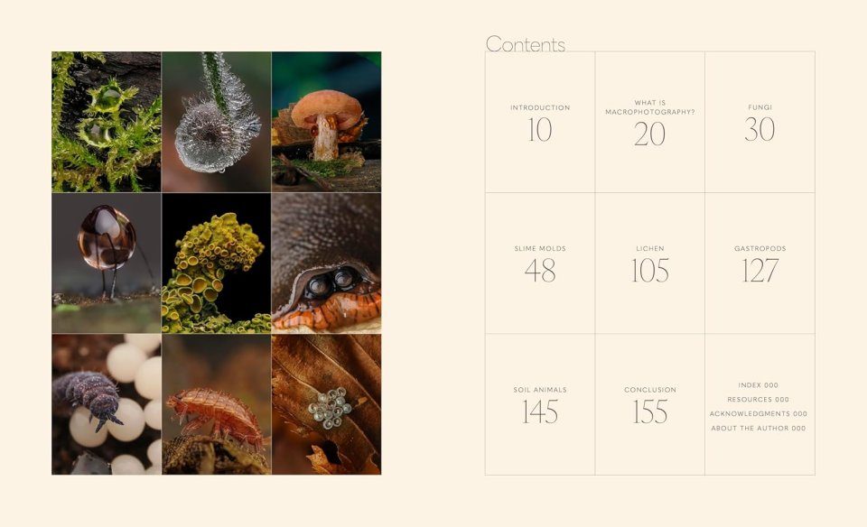 Tiny Nature is a stunning display of the beauty and complexity of the natural world. More than just a photography book, every breathtaking photo offers insightful narratives that delve into the ecological significance of these miniature landscapes. With a keen eye for detail and an artistic vision, expert macrophotographer Jamie Rosencrans showcases a captivating collection of photographs along with guidance to gain a deeper appreciation for the forest floor. Unveil a mesmerising microcosm teeming with life, including: