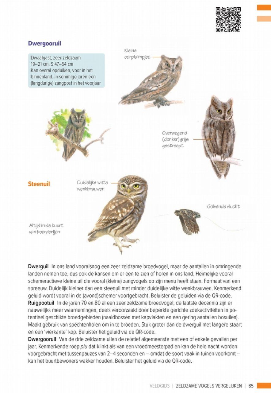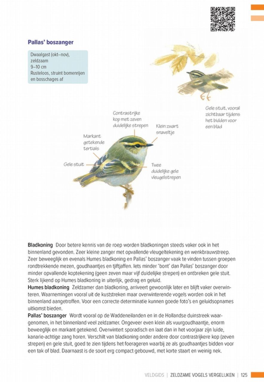 Veldgids Zeldzame Vogels Vergelijken vergelijkt een groot aantal schaarse en zeldzame vogelsoorten met soorten die erop lijken, zoals eider en koningseider, noordse stern en dougalls stern, bladkoning en pallas boszanger. De soorten worden samen afgebeeld en voorzien van aanwijs pijlen naar onderscheidende kenmerken zodat ze makkelijk met elkaar vergeleken kunnen worden. Bij een aantal soorten is bovendien door middel van een QR-code geluid toegevoegd. De perfecte aanvulling op Veldgids Vogels Vergelijken en een onmisbare gids voor de determinatie van zeldzame vogelsoorten. Deze uitgave is tot stand gekomen in samenwerking met SOVON Vogelonderzoek Nederland.